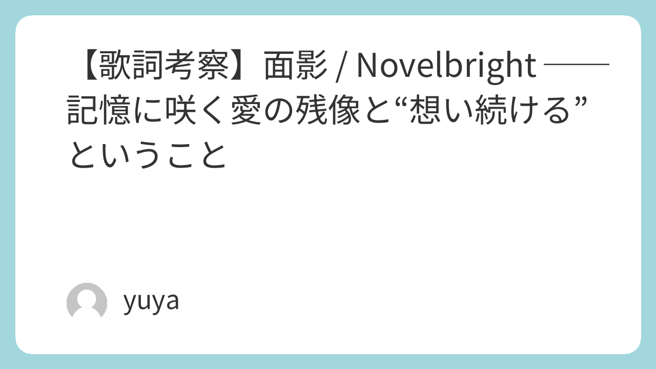 「面影 / Novelbright」は、過去と現在、記憶と現実、理想と願望といった複雑な感情を、美しい言葉と旋律で包み込んだ一曲です。歌詞に込められた「何度も想い返すことの尊さ」「面影として残る感情の深さ」は、リスナーそれぞれの経験と共鳴し、心に長く残るでしょう。
